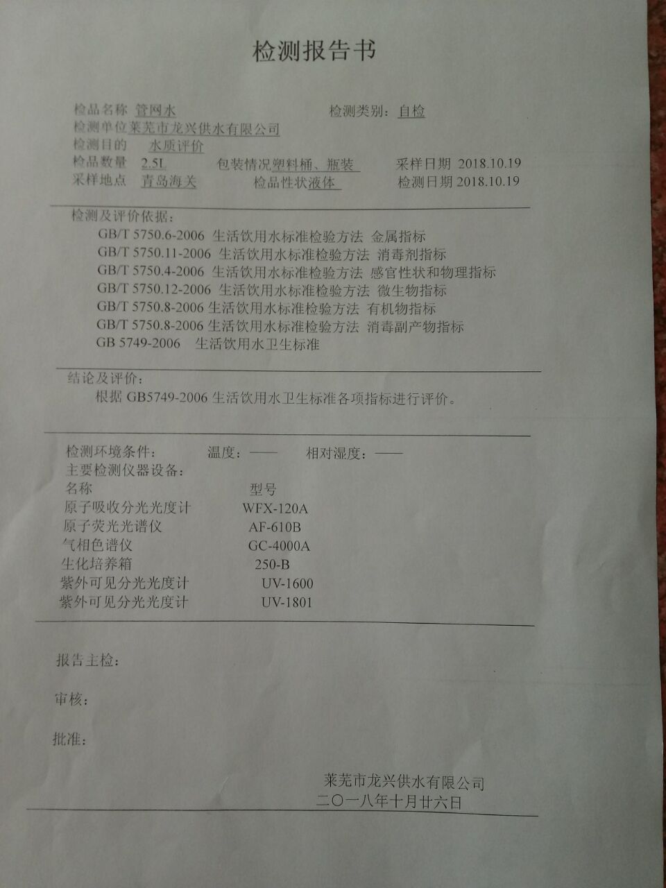 下一篇: 青島海關管網水水龍頭水質檢測報告