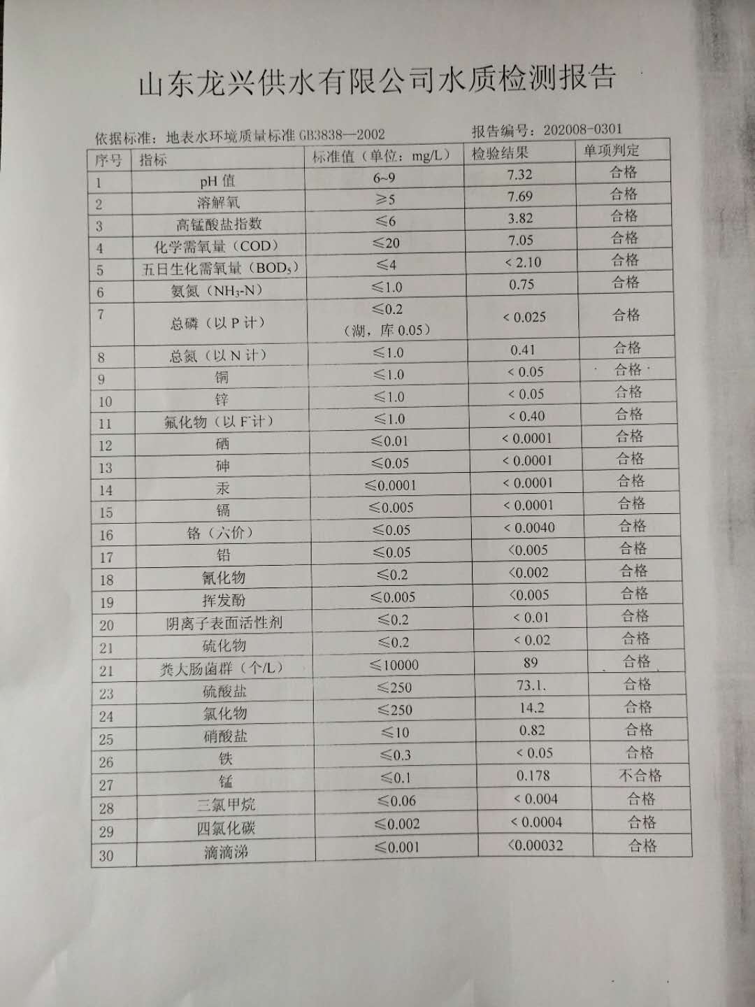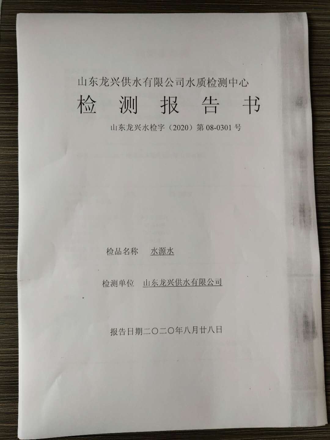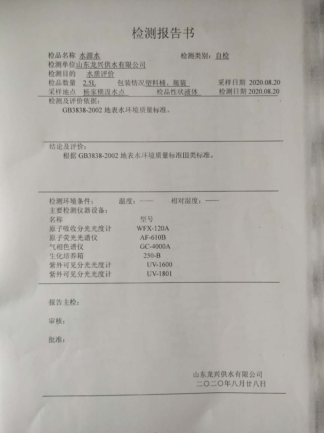 2020年8月水源水月檢報告